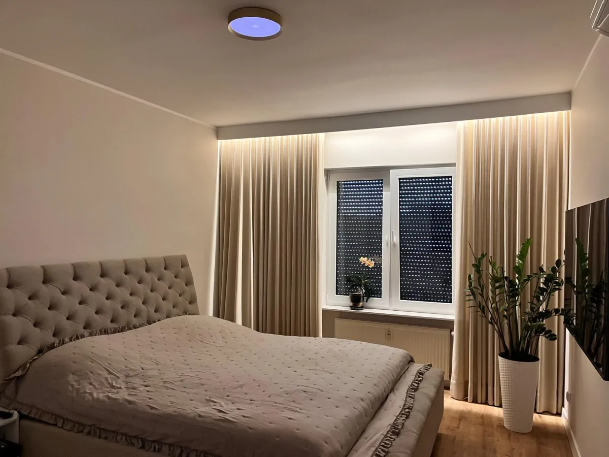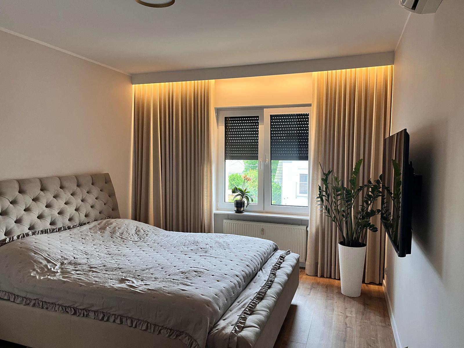 Mieszkanie w pełni zautomatyzowane, obejmujące sterowanie oświetleniem, roletami, alarmem oraz ogrzewaniem. System bezpieczeństwa wyposażony w czujniki gazu, dymu i zalania, z automatycznym zamykaniem dopływu wody w razie awarii. Zainstalowano wideomofon ze zdalnym otwieraniem drzwi oraz czujniki otwarcia okien. Zastosowanie oświetlenia magistralnego Loxone pozwoliło znacznie zmniejszyć rozmiar rozdzielnicy.